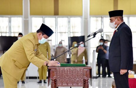 Gubernur Sumatera Utara (Sumut) Edy Rahmayadi mengukuhkan 40 Pejabat Pimpinan Tinggi Pratama (Eselon II) dan Pejabat Administrator (Eselon III) di Lingkungan Pemerintah Provinsi (Pemprov) Sumut, Senin (4/1), di Pendopo Rumah Dinas Gubernur, Jalan Jenderal Sudirman Nomor 41 Medan. Pengukuhan ini sekaligus menandai perubahan sejumlah nomenklatur dan unit kerja di Lingkungan Pemprov Sumut.