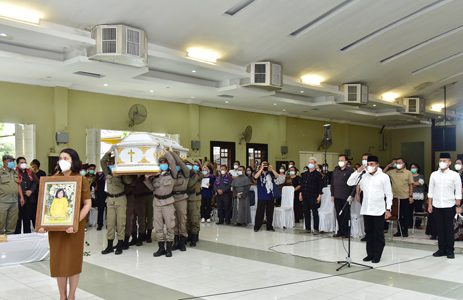 Usai upacara, Gubernur pun menyampaikan ucapan belasungkawa kepada pihak keluarga yang mengikuti prosesi kenegaraan. Dirinya juga memberikan doa semangat agar yang ditinggalkan bisa tabah dan sabar.