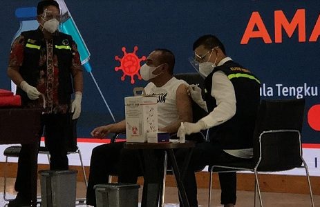 Menurut pantauan, Edy menerima vaksin sekitar pukul 10:30 WIB di Aula Tengku Rizal Nurdin, Rumah Dinas Gubernur Sumatra Utara. Edy menggunakan kemeja putih dan didalamnya menggunakan kaos putih bertuliskan “INDONESIA”.