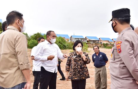 Gubernur Sumatera Utara (Sumut) Edy Rahmayadi meninjau kawasan relokasi korban terdampak erupsi Gunung Sinabung di perbukitan Puncak Siosar, Desa Kacinambun, Kabanjahe, Kabupaten Karo, Jumat (3/9). Pada kesempatan itu, Gubernur meminta pembangunan di Puncak Siosar tertata rapi, dan menjadi daya tarik wisatawan.